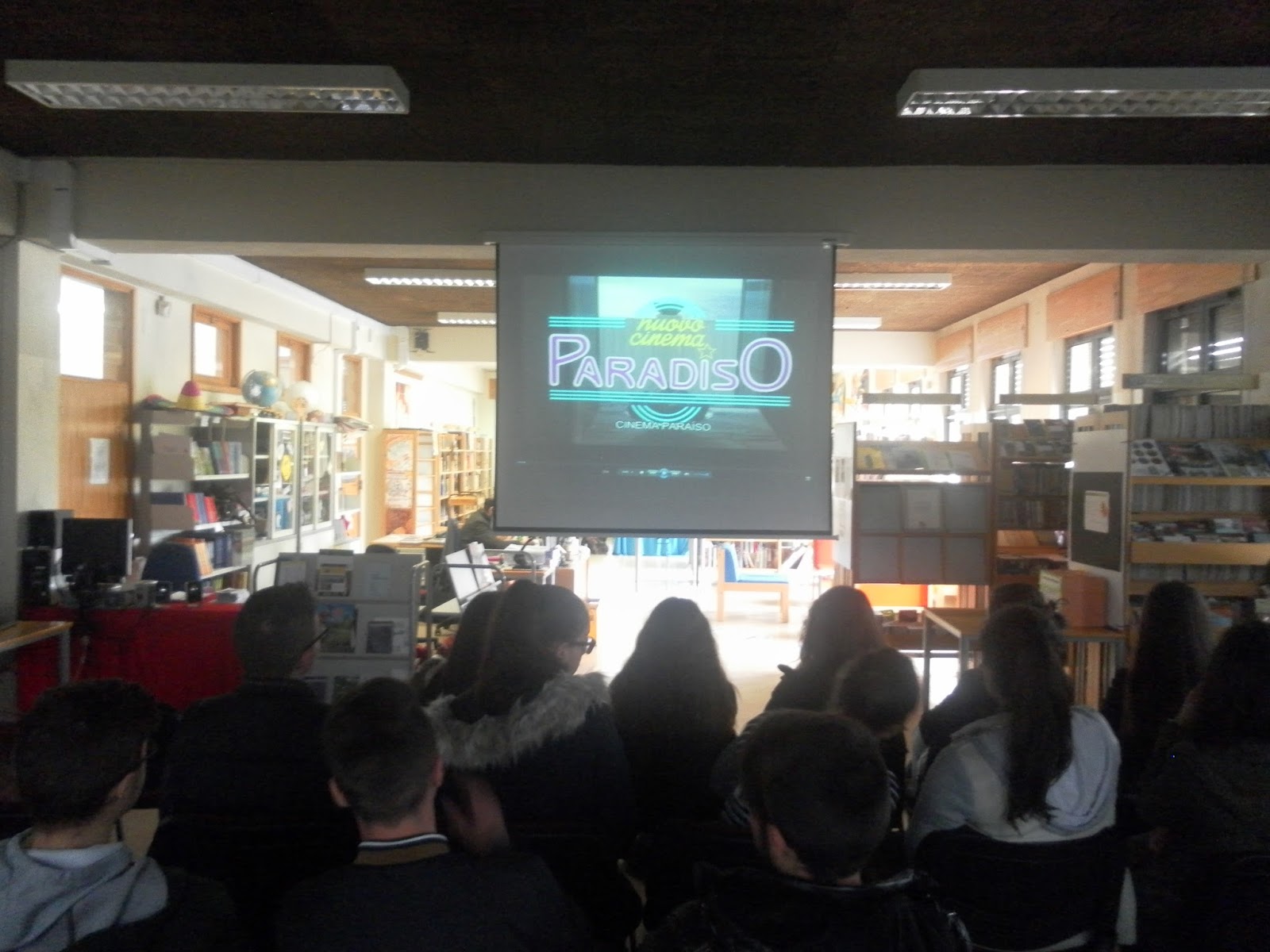 Nos dias 9 e 10 de maio, as turmas 10ºA e 12ºA visualizaram a 1ª parte do filme “Cinema Paraíso”, na Biblioteca escolar, numa colaboração com a disciplina de EMRC, no âmbito da atividade “Filme do mês” e do Plano Nacional do Cinema (PNC).